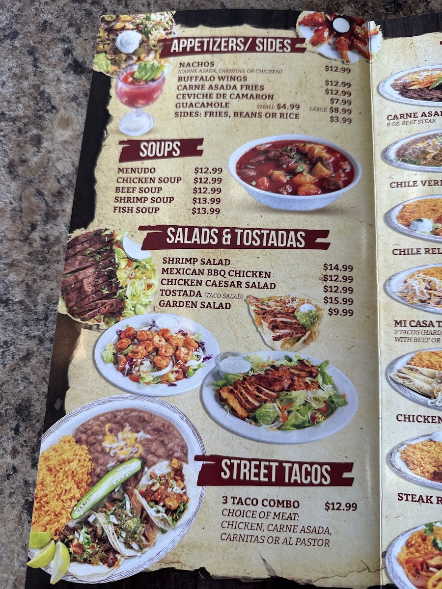 “ Parking: They’re located in a small plaza, but parking is easy to find. Free parking lot. Ambiance/Environment: Walking in, you can either place an order to-go at the register or let the worker know you’d rather dine. My partner and I decided to dine in tonight. The worker gave us menus and told us we can choose any table. It’s a medium sized restaurant. Good for big groups. Service: Our first server did not understand English when we asked him a couple questions about the menu, so he grabbed another server to assist us. The second server was able to answer our questions and gave us a couple recommendations. After ordering, we waited approximately 15 min for our orders. Food: 1) Chicken Flautas - I ordered this. It was served with beans, rice, sour cream, and guacamole. The chicken flautas were big! The chicken was cooked well, and outer layer was crunchy. I really enjoyed this dish. 2) Carne Asada - My partner ordered this. It was also served with beans, rice, and sour cream; no guacamole but it came with 3 tortillas. The carne asada was flavorful and cooked well. My partner had fun making his own tacos. 3) Chips & salsa - Complimentary appetizer. The salsa was spicy, but a bit salty. Pricing: Prices were $$$. Can’t blame them, especially in this inflation. We loved our dishes and left our bellies more than fulfilled. We’ll be back for more! ”